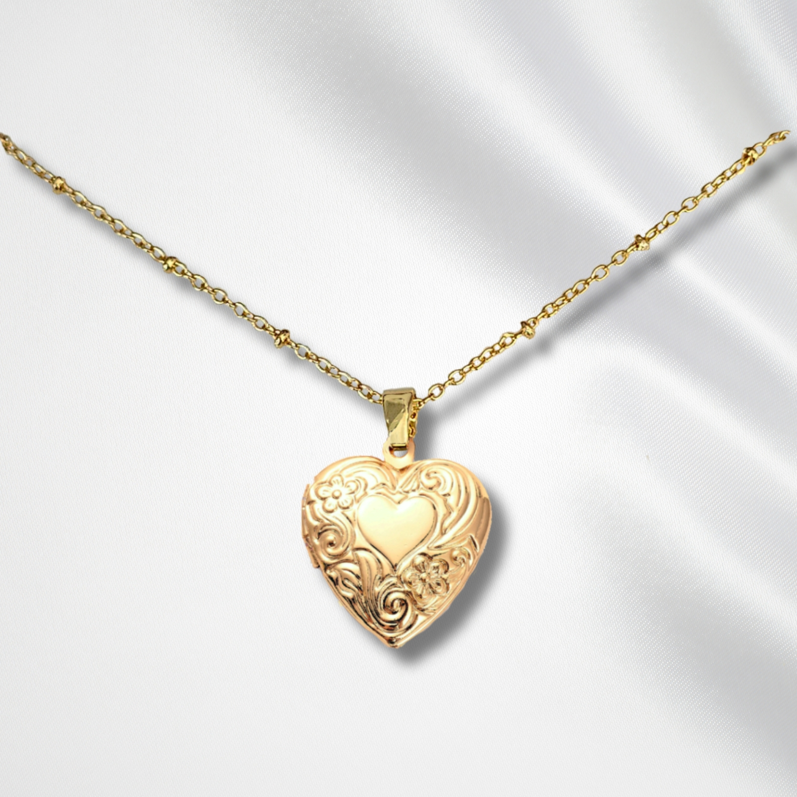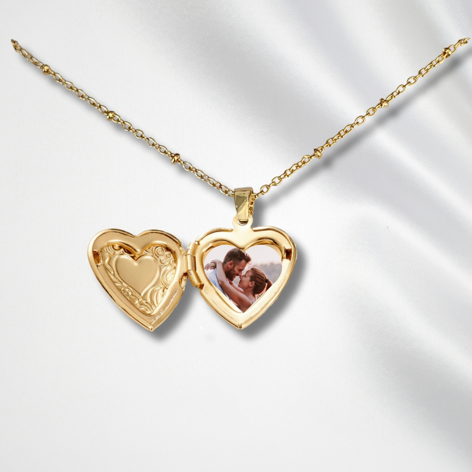 Colier placat cu aur de 18 K cu pandant locket inima, personalizat cu fotografie