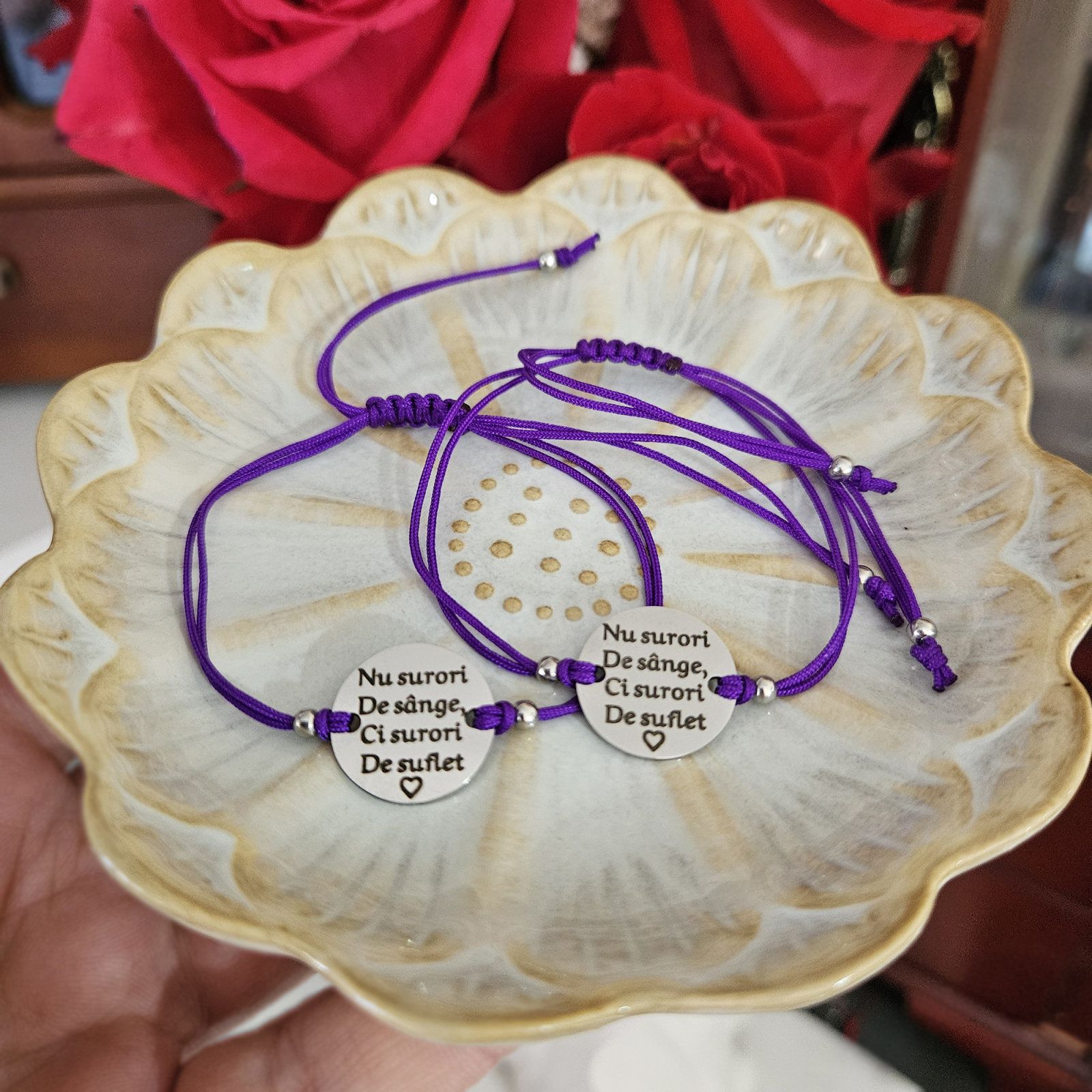 Unele legături sunt mai puternice decât orice legătură de sânge. Această brățară cu mesaj gravat „Nu surori de sânge, ci surori de suflet” este un simbol frumos al prieteniei adevărate, dedicată celei mai bune prietene, sufletului pereche în prietenie.