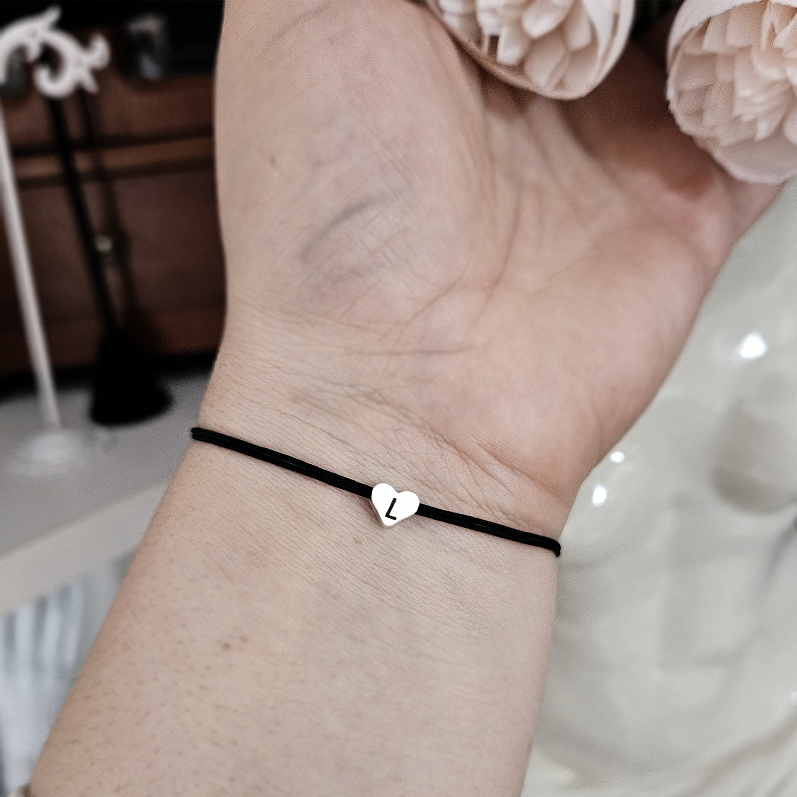 O superba bratara cu charm inimioara, ce poate fi gravata cu o initiala.