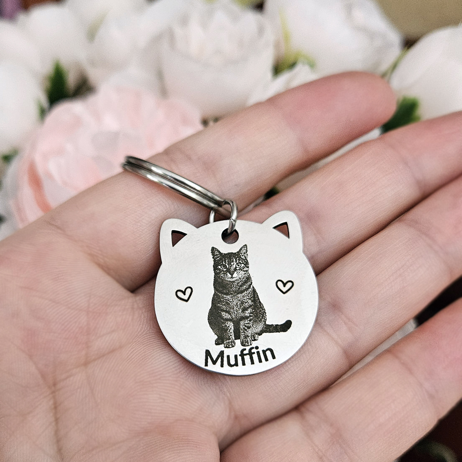 Medalion Personalizat Pisică cu Poză, Breloc Inox Gravat Foto, Medalion Animal de Companie, Cadou Iubitori de Pisici