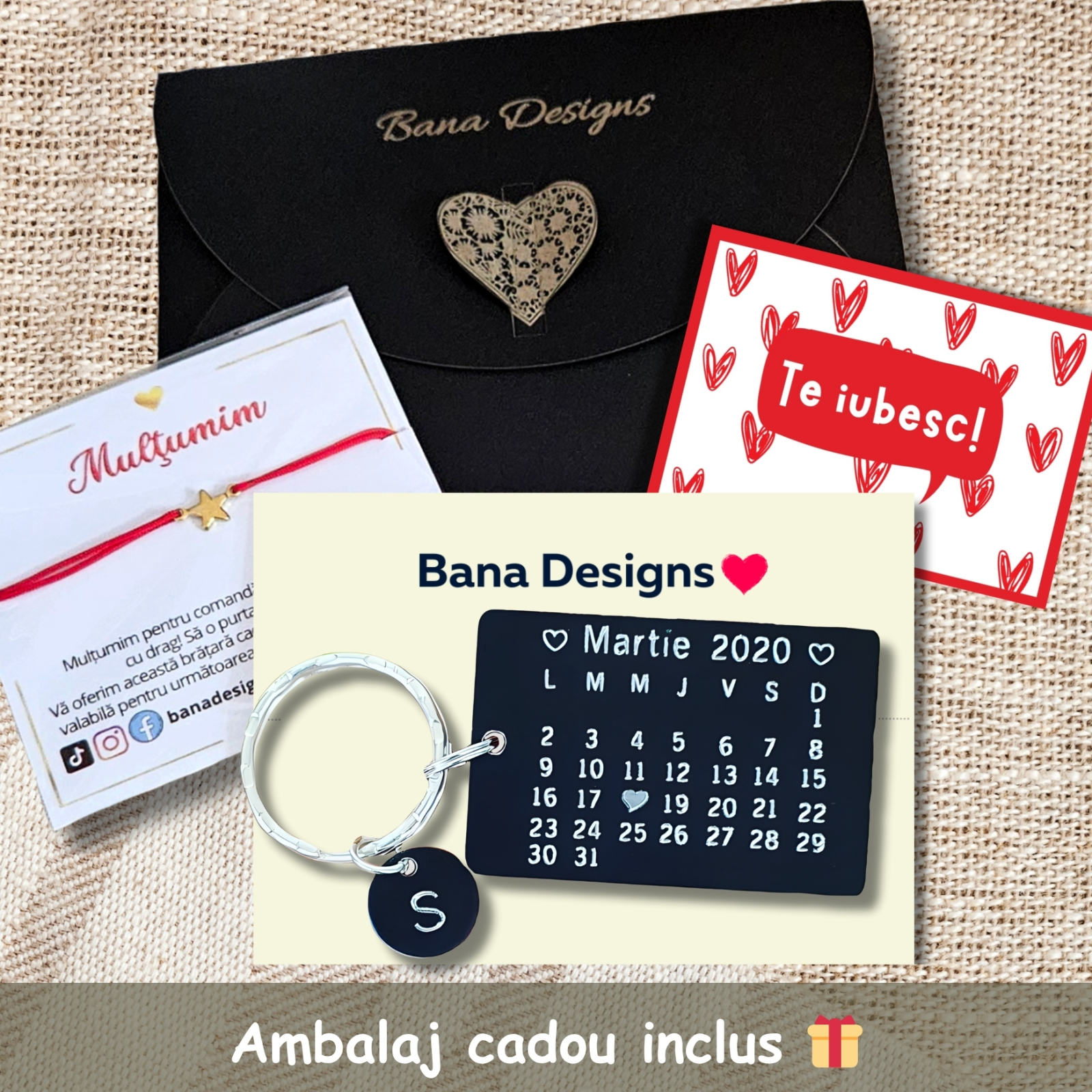 ✔ Ambalare: cartonaș + plic inimioară, opțional săculeț și felicitare cadou