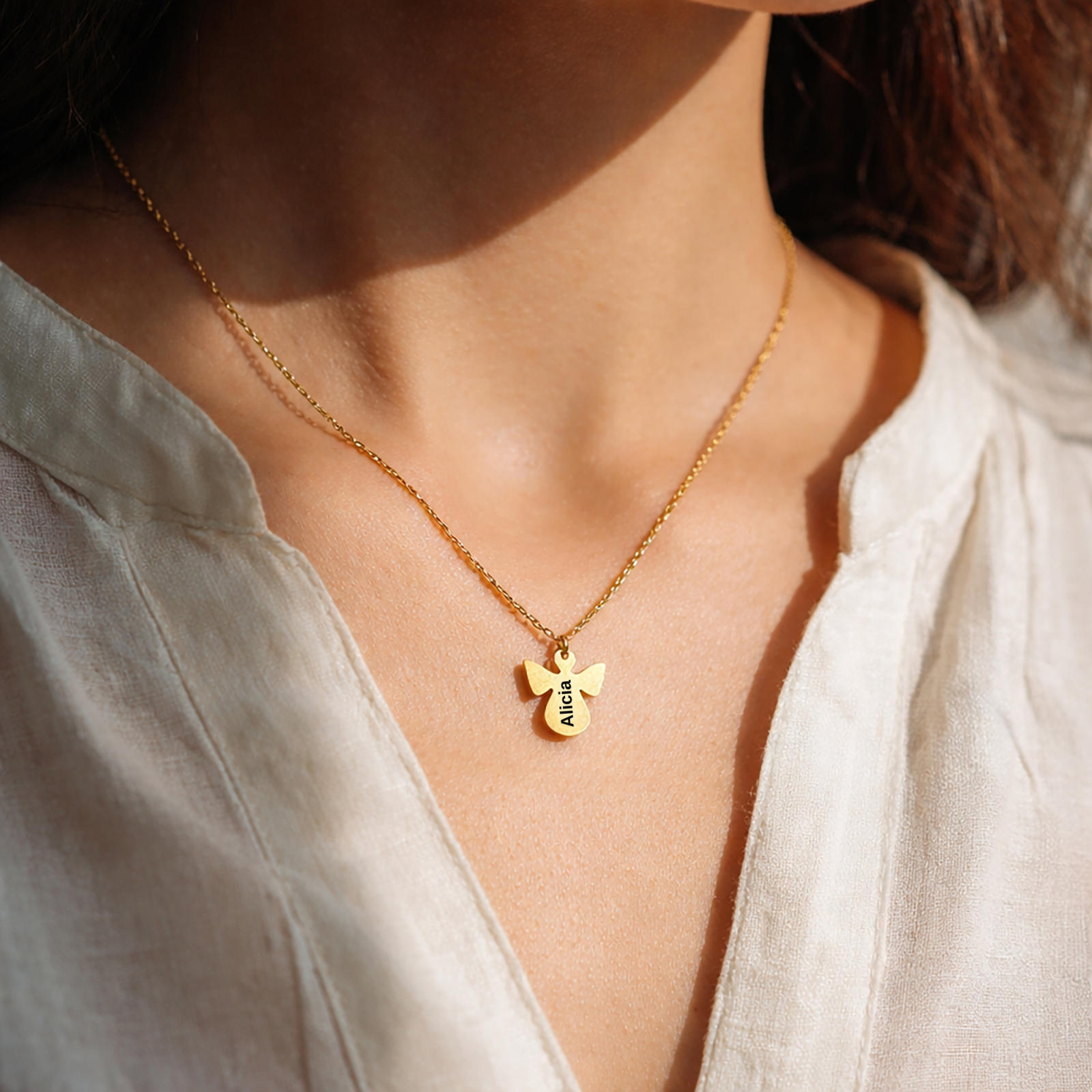 Acest colier înger gravat cu nume este un cadou perfect pentru botez, aniversare, Prima Împărtășanie sau pentru cineva drag, ca simbol al protecției divine și al legăturilor sufletești.