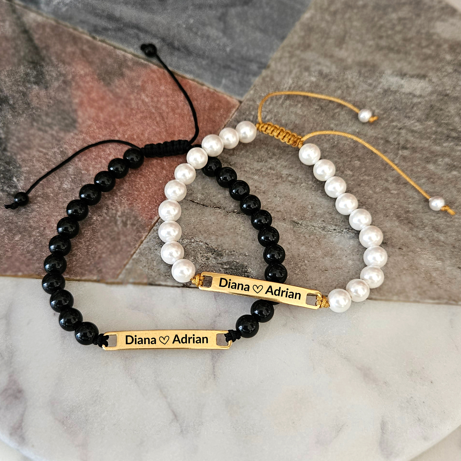Celebrează legătura voastră cu un set de brățări personalizate pentru cuplu, create pentru a simboliza iubirea, echilibrul și conexiunea dintre voi.