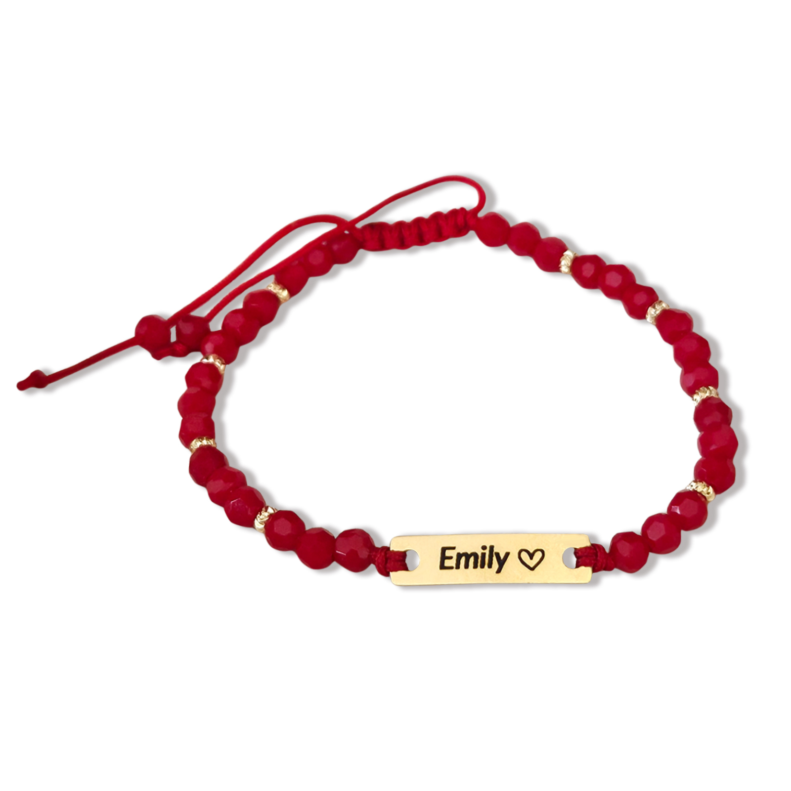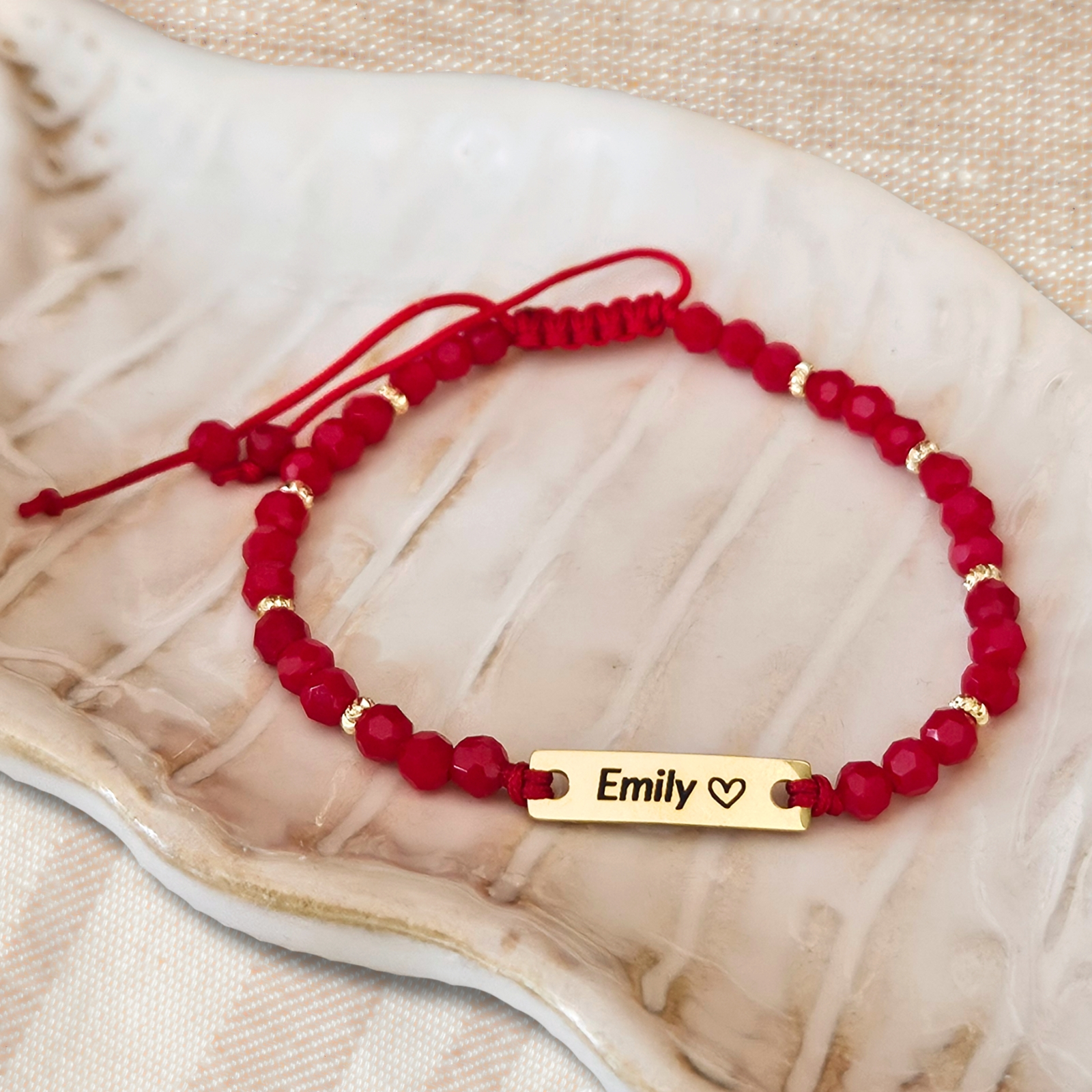 Adaugă o notă de eleganță și semnificație fiecărei zile cu această brățară personalizată din oțel inoxidabil waterproof, decorată cu cristale roșii fațetate.